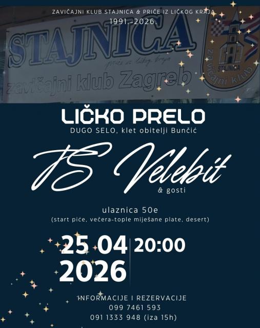 U petak, 13. veljače 2026., održano je Ličko prelo kod Macole, u Korenici, u organizaciji Zavičajnog kluba Stajnica iz Zagreba.