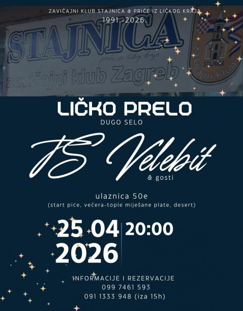 U petak, 13. veljače 2026., održano je Ličko prelo kod Macole, u Korenici, u organizaciji Zavičajnog kluba Stajnica iz Zagreba.